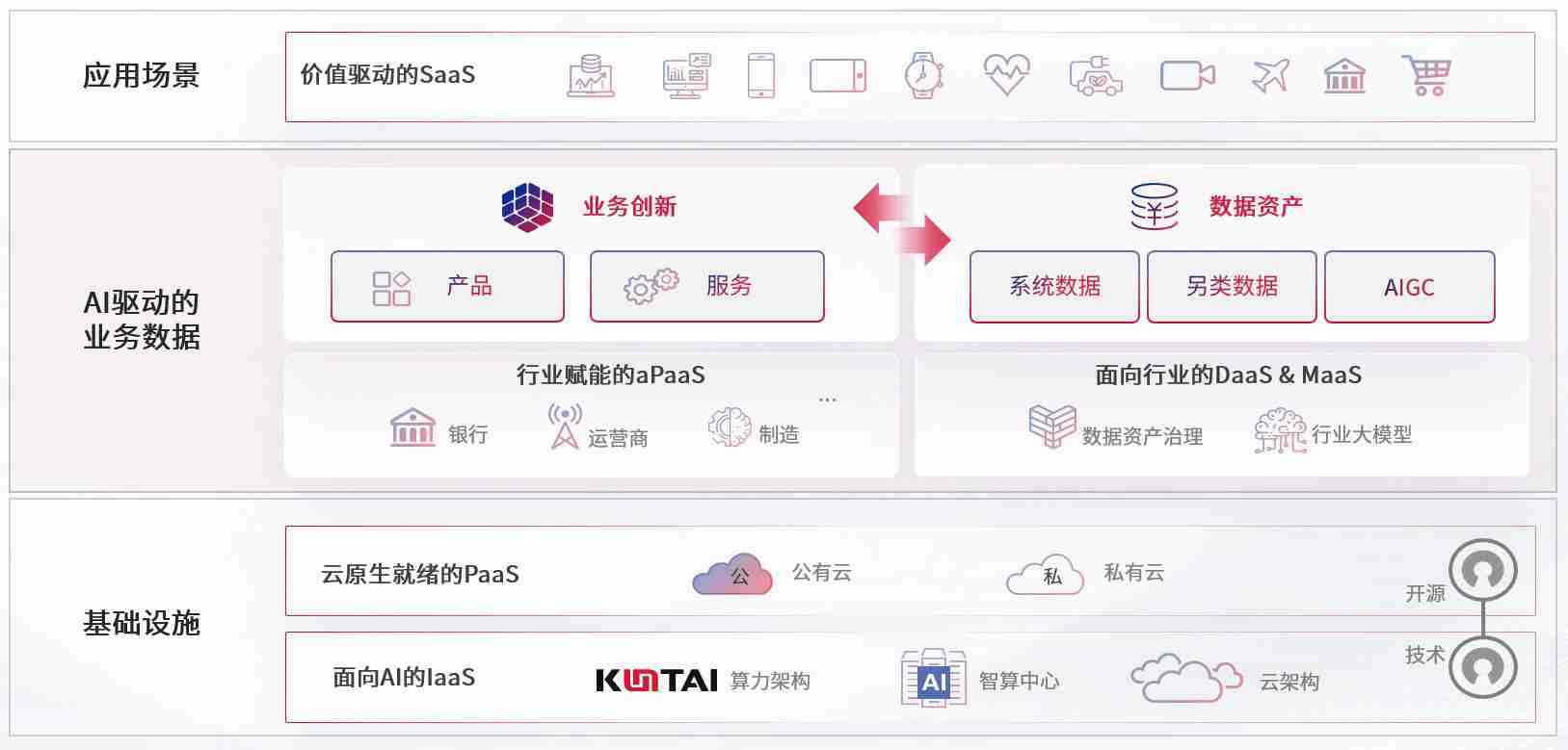 数字时代,,,围绕企业数字化转型的关键要素,,,,PG数码开创性的提出数云融合战略和技术体系框架,,着力在云原生、、、、数字原生、、AI原生和信创产业上架构产品和服务能力,,为处在不同数字化转型阶段的快消零售、、、、汽车、、、金融、、、医疗、、、政企、、、教育、、、运营商等行业客户提供泛在的敏捷IT能力和融合的数据驱动能力,,,构建跨界融合创新的数字业务场景和新业务模式,,,助力企业级客户建立面向未来的核心能力和竞争优势,,全面推动社会的数字化、、智能化转型升级。。